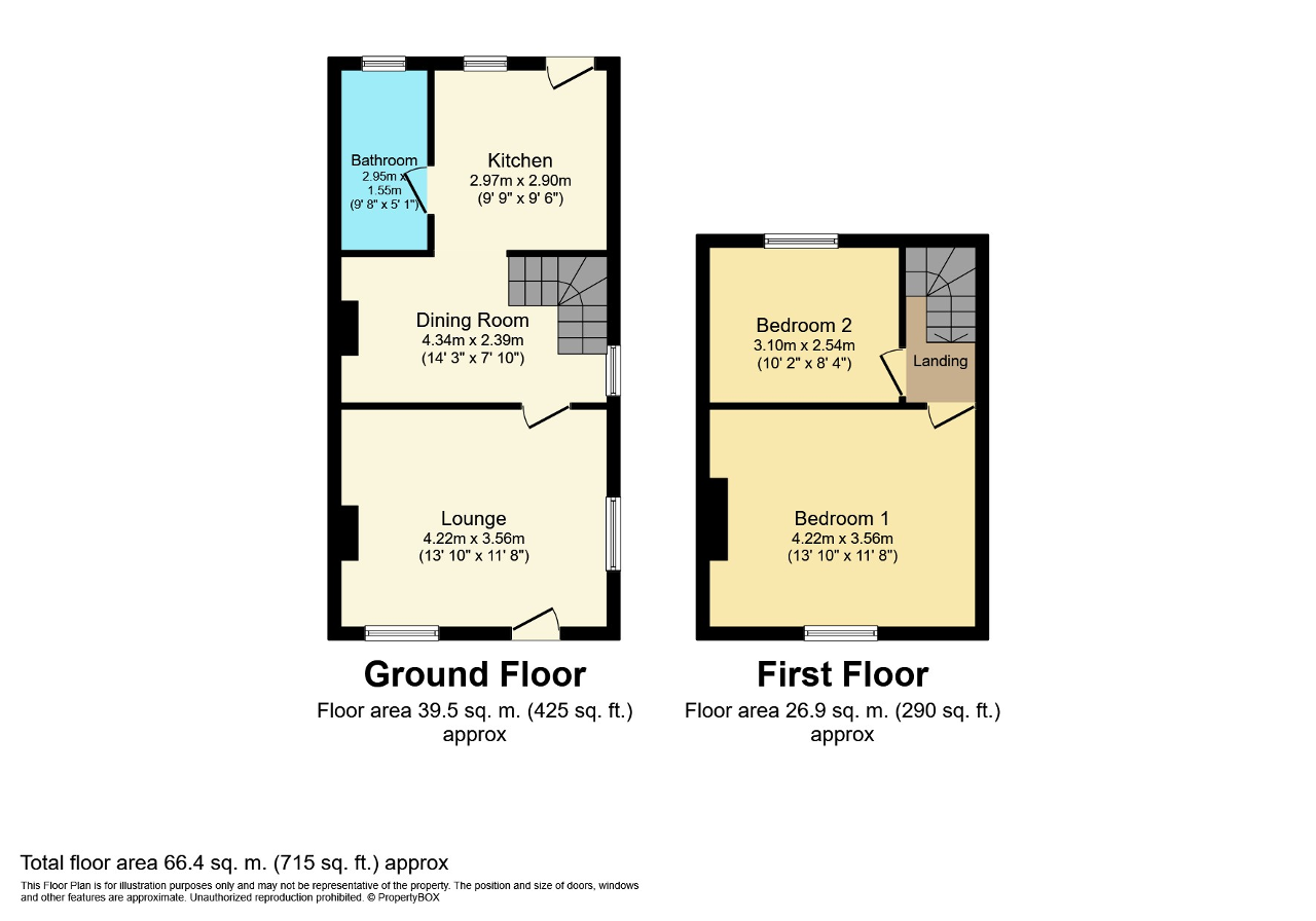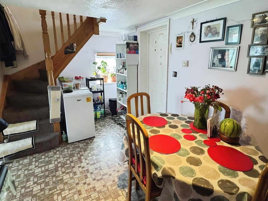 The ground floor offers a well laid out arrangement, including a lounge and a kitchen that is open plan to a defined dining area, creating a practical everyday living space. A bathroom is also located on the ground floor. Upstairs, there are two double bedrooms.