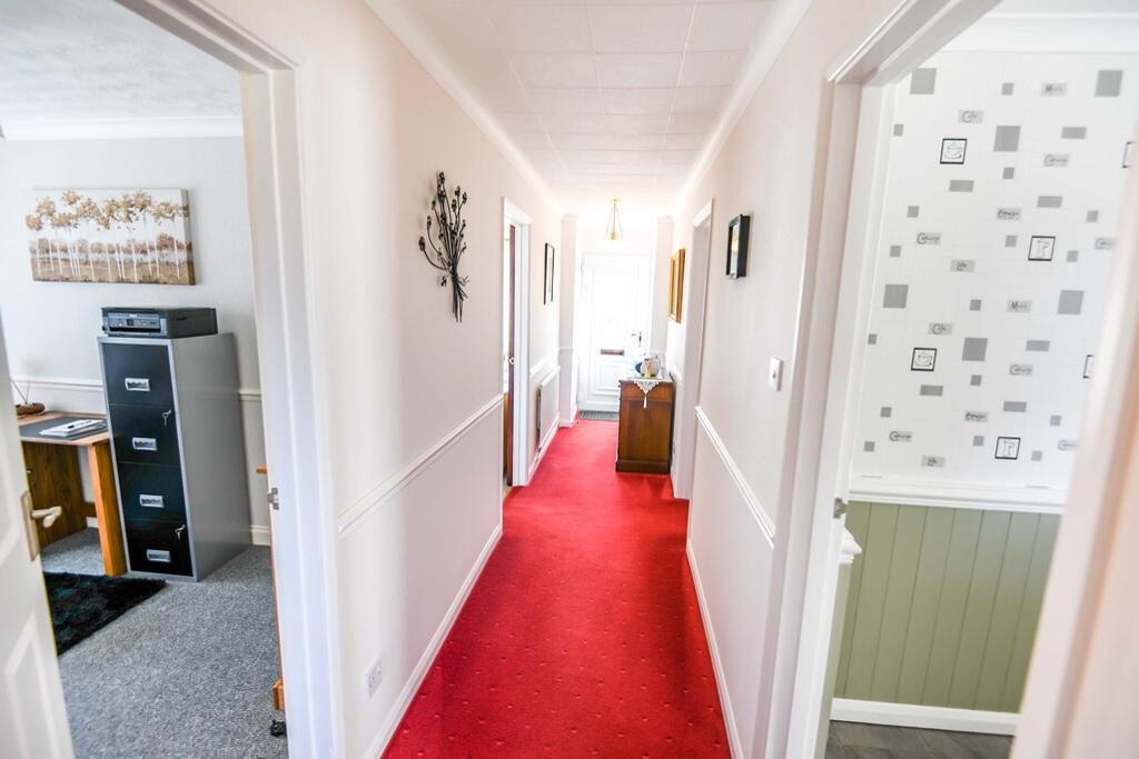 This good sized bungalow has 3 bedrooms, a kitchen/diner, lounge, bathroom & a side porch. The property benefits from having oil central heating, double glazing & mains drainage. The Energy Performance Certificate rating is D.