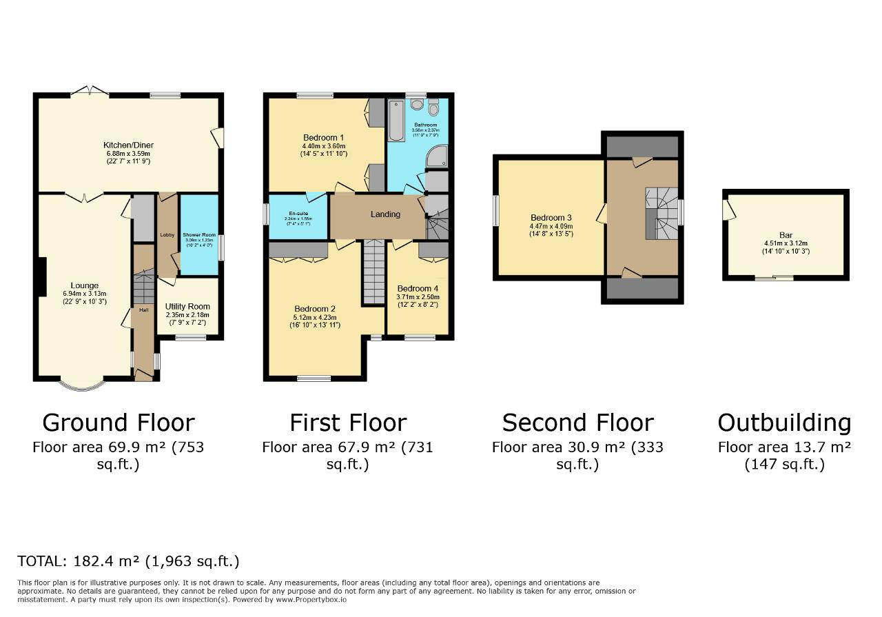 The first floor hosts three double bedrooms, the main bedroom benefitting from an en-suite. There is also a large family bathroom comprising both a bath and separate shower cubicle. The top floor is home to the fourth bedroom, offering a quiet retreat tucked away from the rest of the house.