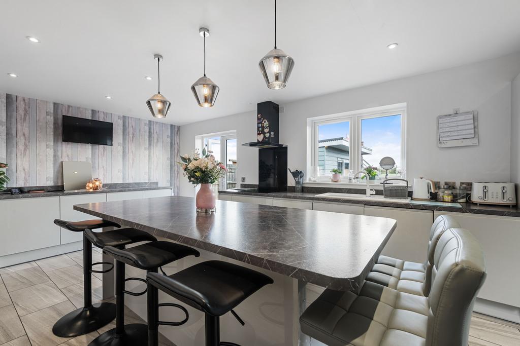 Outside, the property continues to impress with multiple off-road parking spaces to the front. To the rear, a good-sized, well-maintained garden includes a patio and artificial grass area. A bar completes this outdoor space, providing a fantastic area for socialising and enjoying the outdoors.
