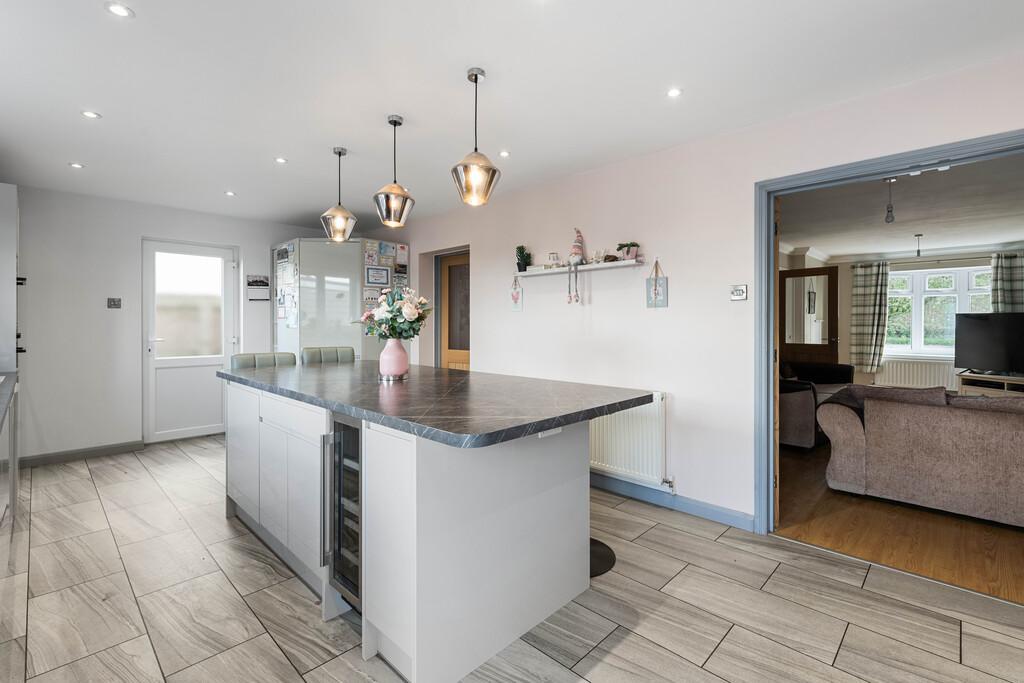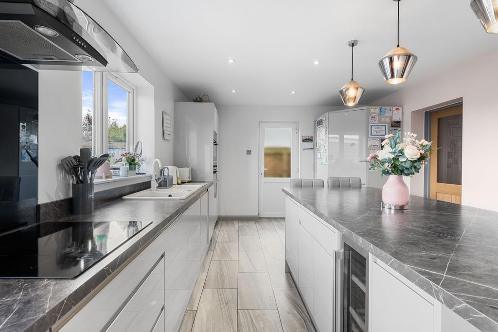The ground floor features a stunning kitchen, the focal point of this home, complete with an island, double oven, built-in fridge/freezer, hob, extractor and even a wine cooler. Double doors lead from the kitchen into a spacious 22 FT lounge, providing a perfect space for family gatherings or quiet evenings in. Completing the ground floor is a practical utility room and a shower room.
