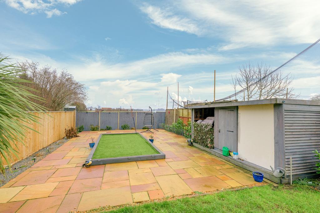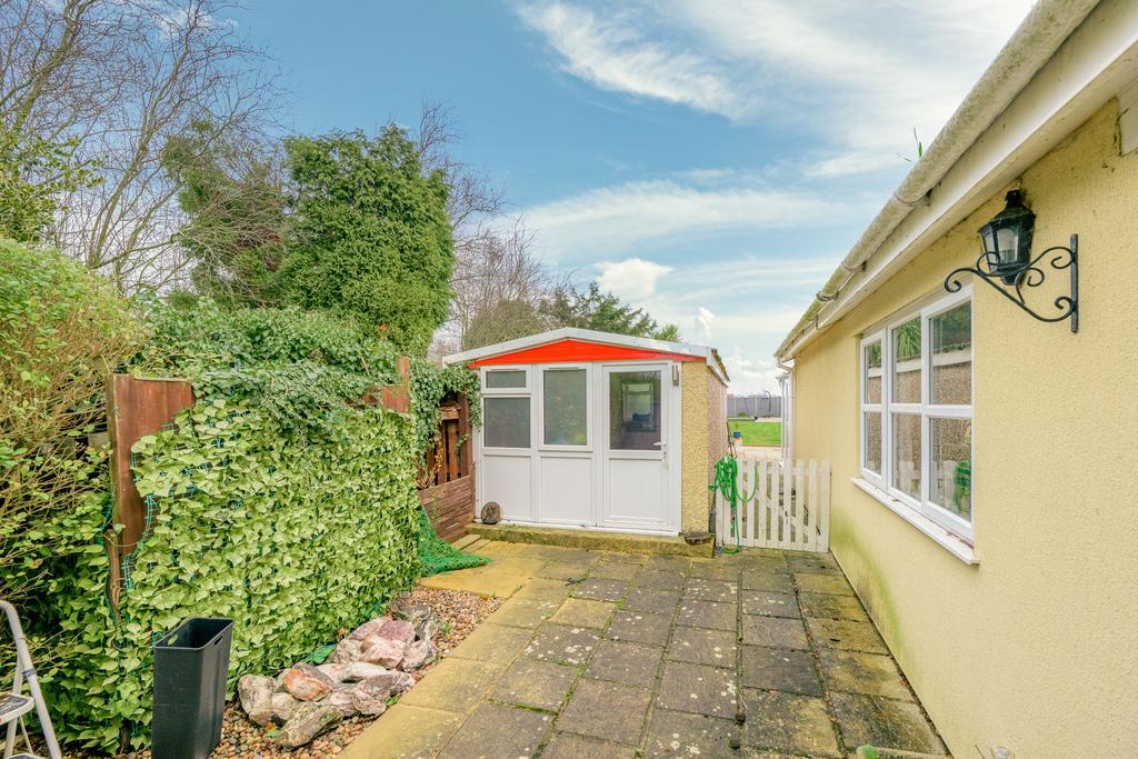 Outside space offers a fantastic size driveway with plenty of parking, side access via a small courtyard area to the rear garden which has a studio/workshop, patio area and is mostly laid to lawn and nothing but field views to the rear.