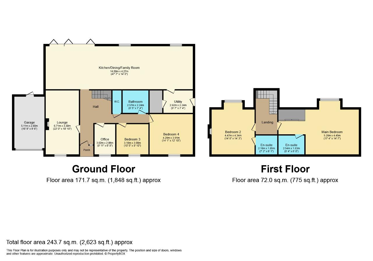 The ground floor also has a large, welcoming hallway, 2 double bedrooms, a 22 FT lounge and an office - An abundance of rooms that provide flexible accommodation. Moving upstairs there are 2 further double bedrooms - BOTH benefiting from having en-suites!