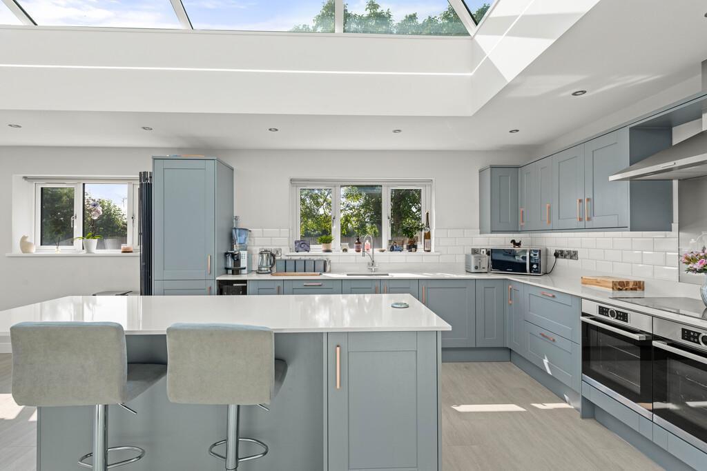 47' 11'' x 14' 0'' (14.61m x 4.27m) QUARTZ worktops + integrated BOSCH appliances including double oven, induction 5 ring hob. fridge/freezer, dishwasher AND wine cooler
