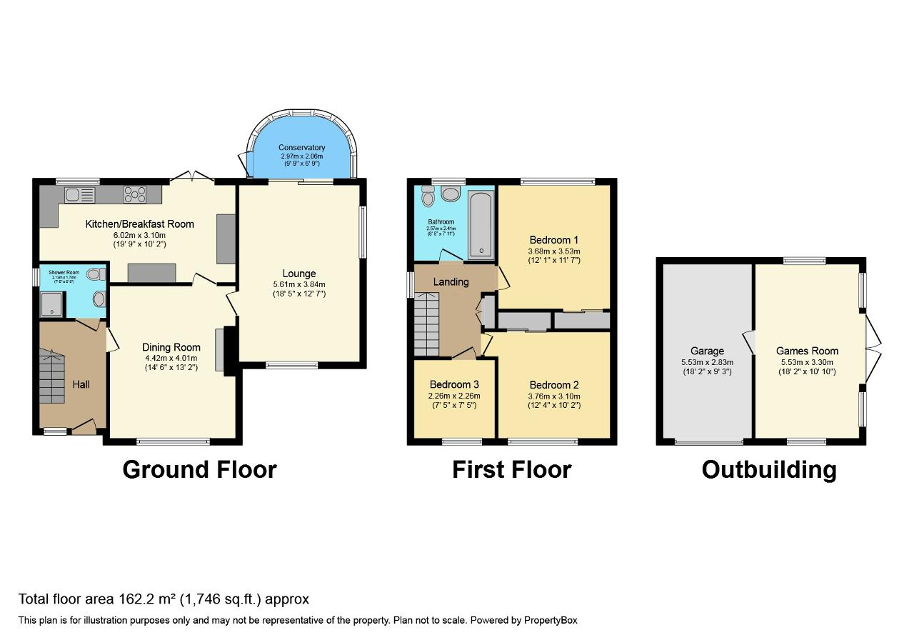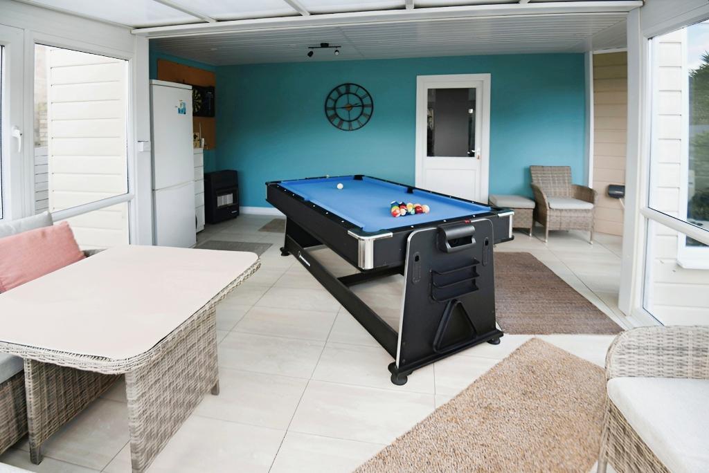 Outside to the front there is a long driveway providing multiple off road parking and a large garage/workshop. Attached to the side of it is an impressive Games Room/Conservatory.