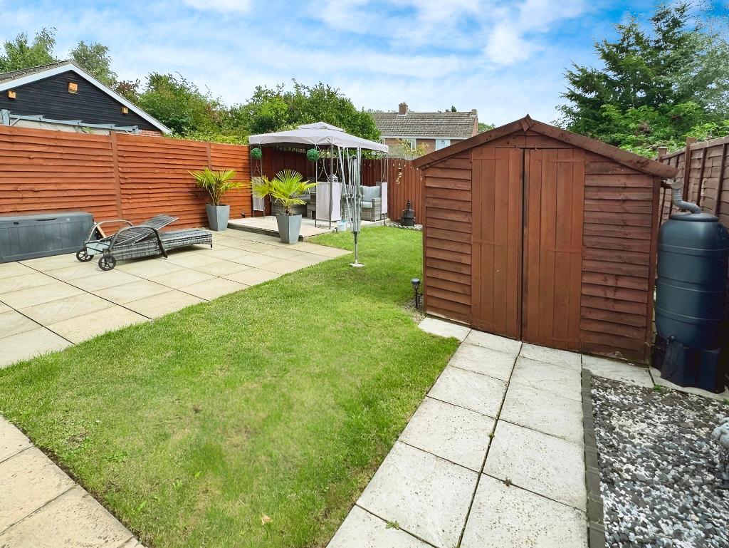 Outside, the property benefits from off-road parking and a garage, providing ample space for vehicles. Side access leads to a beautifully maintained garden, featuring a patio, a well-kept lawn, an outside tap, a power socket and a shed for additional storage.