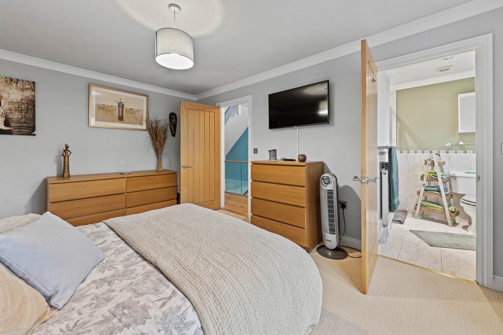 14' 7'' x 10' 11'' (4.47m x 3.35m) Window to front river aspect, TV & phone points, radiator, and door to en-suite shower room. Designer wallpapered feature wall.