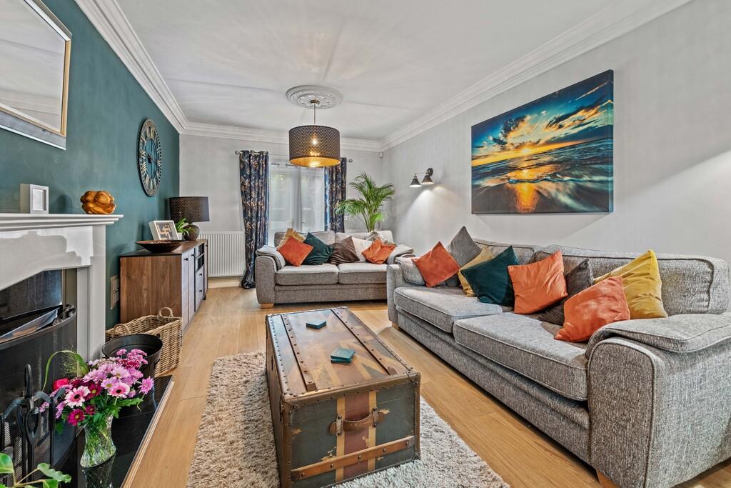 16' 1'' x 11' 1'' (4.93m x 3.38m) Bay window to front aspect, wood effect flooring, radiator, coved and plastered ceiling.