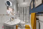 Newly decorated. Includes white "Heritage" suite comprising low level WC pedestal washbasin and tiled splash back, tiled floor, radiator and extractor fan. There is a newly installed heated towel rail.