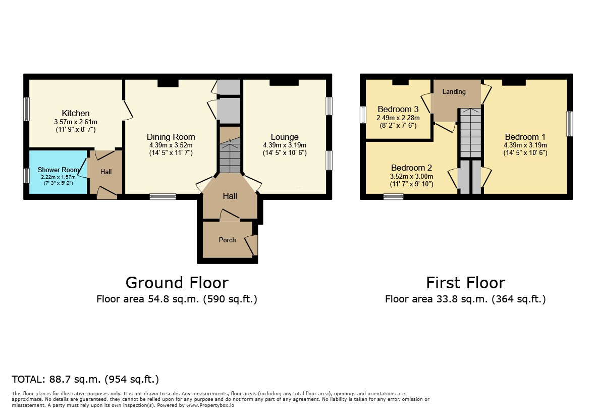 The property consists of three bedrooms, one shower room, and two reception rooms, all in excellent condition. The main bedroom benefits from fitted wardrobes, providing ample storage space. The living area is highlighted by a multi-fuel burner, ideal for cosy evenings in.