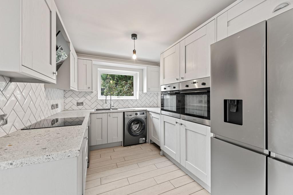 The recently installed modern kitchen comes equipped with a double oven, hob, extractor, and a large fridge. The shower room has also been re-fitted.