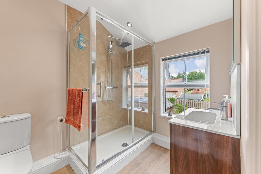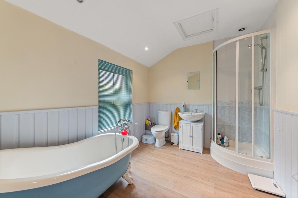 Upstairs, four well-sized bedrooms, including a principal suite with a walk-in wardrobe and ensuite, offer stylish and comfortable living. A family bathroom with a roll-top bath completes the home.