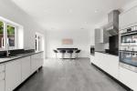 The luxury kitchen has 2x Bosch ovens + microwave, induction hob, extractor & breakfast bar. There is also an integrated dishwasher (newly installed), tall fridge/freezer, washing machine + a boiling/chilled water tap. There are wires set up for a wall mounted TV too.