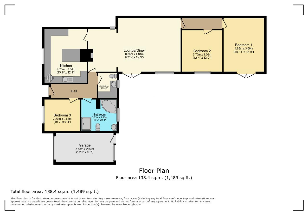 The bungalow comprises of an entrance hall, three double bedrooms, a family bathroom featuring a four-piece suite, a utility room with a WC, 27ft lounge/diner with a brick fireplace, well equipped kitchen with lots of storage and an island area.