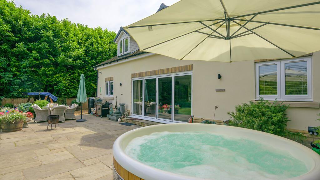 Outside, the property continues to impress with its long driveway that provides ample off-road parking, including an electric car point. A variety of storage units, a shed, log store, patio, and an air source heat pump for the swimming pool contribute to the property's impressive features.