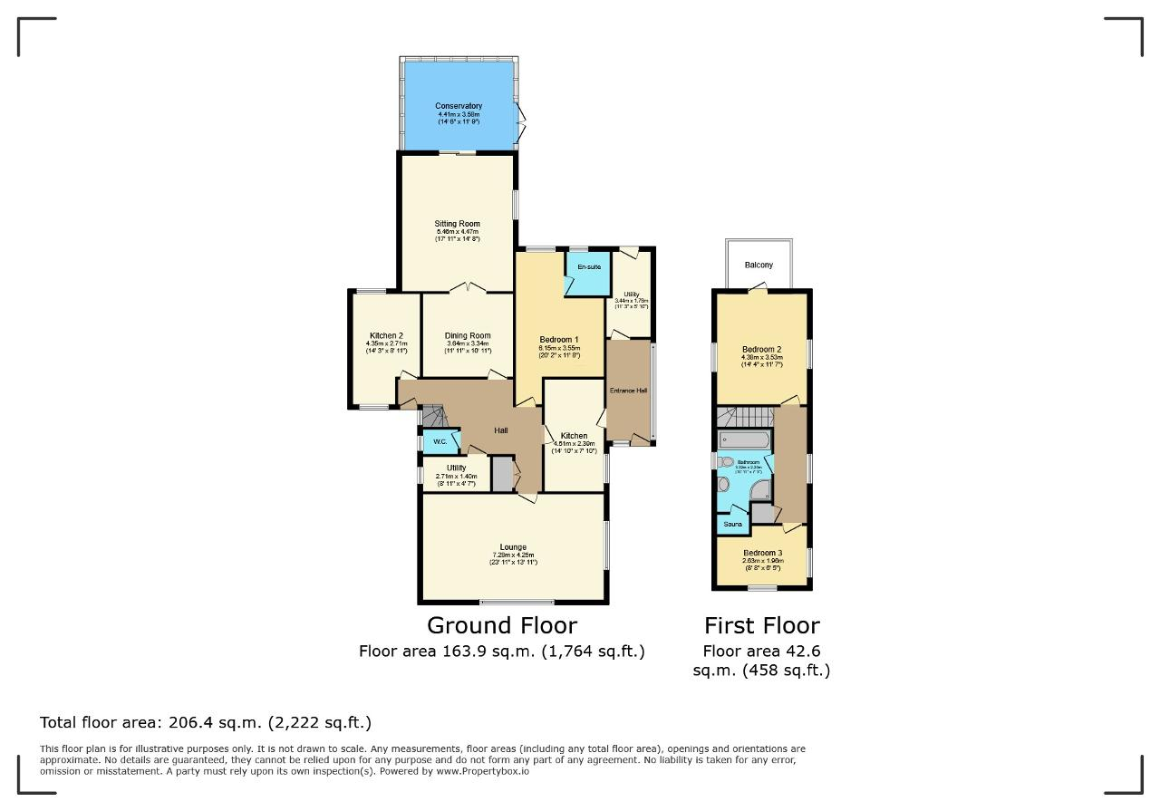 The accommodation consists of a welcoming entrance hall, two utility rooms, two kitchens, hallway, fantastic size lounge, a ground floor W.C., dining room, another spacious sitting room and an additional conservatory. Bedroom 1 is also on the ground floor with an en suite bathroom and dressing room area.
