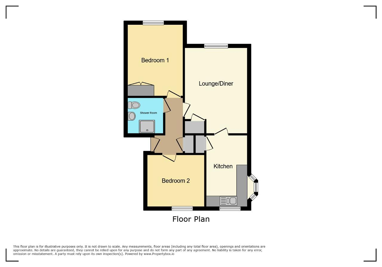 There are two comfortable bedrooms, one benefitting from a built-in double wardrobe, and a modern shower room. Additional features include double glazing, off-peak electric heating, and access to loft space and built-in cupboards from the entrance hall.