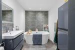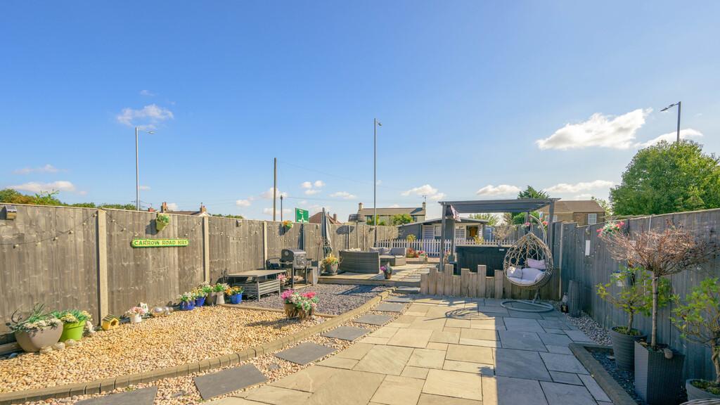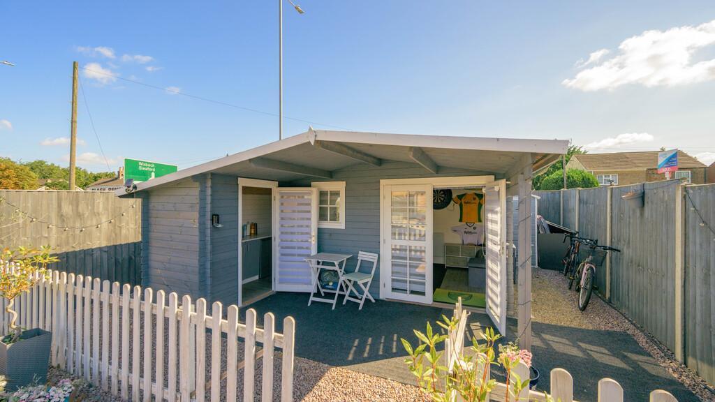 Outside, the property benefits from off-road parking to the front, with gated side access leading to a beautifully designed rear garden. Low maintenance and thoughtfully arranged, the garden features multiple seating areas, a raised pergola space ideal for a hot tub, and LED-lit pathways guiding you to a detached timber summer house/man cave. Complete with its own kitchenette and WC, this versatile space is perfect for entertaining, working from home, or simply relaxing.
