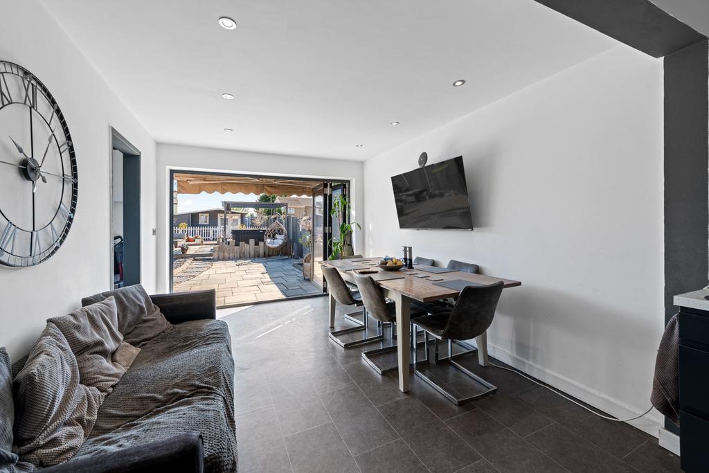 The accommodation includes a welcoming entrance porch that doubles as a home office, leading into a spacious lounge with a feature fireplace and a clever under-stairs seating area. The open-plan kitchen/family room is a real highlight, with bifold doors opening onto the recently landscaped rear garden, creating a seamless flow between indoor and outdoor living. A walk-through utility room adds practicality, while the large four-piece bathroom offers a touch of luxury with a freestanding bath and double shower. Upstairs, there are two comfortable double bedrooms.