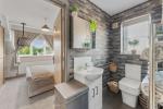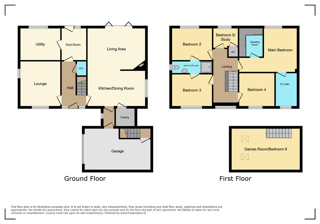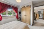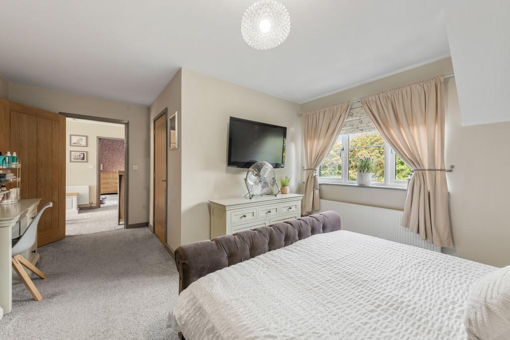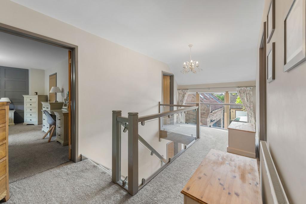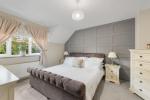 Upstairs, the galleried landing adds a real sense of space and leads to five well-proportioned bedrooms. The principal suite features a walk-in wardrobe and a luxurious en suite with freestanding roll-top bath, walk-in shower, and twin basins. Bedrooms two and three are comfortable doubles sharing a Jack-and-Jill en suite, while bedroom four is another spacious double. Bedroom five is a versatile single, currently used as a study. Above the garage, a large games room offers potential as a sixth bedroom or guest suite.