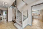 Step inside to a light-filled entrance hall that sets the tone for the stylish interiors throughout. The heart of the home is the impressive open-plan kitchen/dining/living area, a superb space for entertaining and everyday family life, complete with a central island, log burner, walk-in pantry, and bi-folding doors opening onto the garden. A separate lounge provides a cosy retreat, while the ground floor also includes a cloakroom, boot room, and a generously sized utility room.