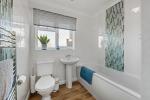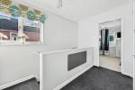 Upstairs, the landing connects to a stylish family bathroom and three well-proportioned bedrooms. The main bedroom features fitted wardrobes.