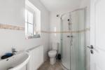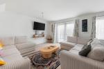 Upstairs, you"ll find three well-proportioned bedrooms, including a master with its own ensuite, plus a sleek family bathroom. Outside, the rear garden offers a peaceful escape with a patio and lawn, while the front of the property boasts extensive gravelled off-road parking, a neat lawn area, and access to the garage.