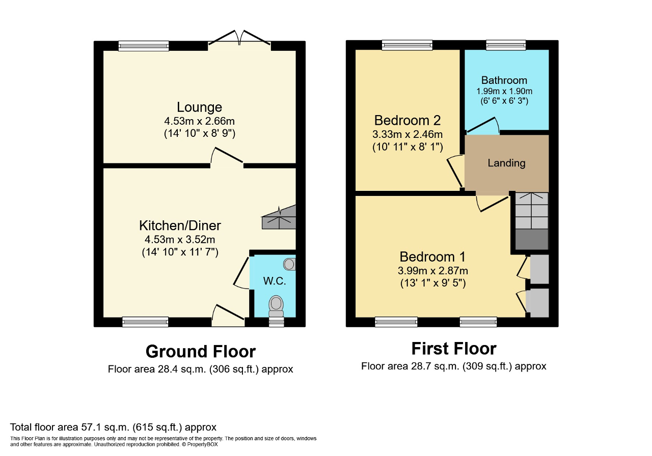 The accommodation is well laid out with a good sized kitchen/diner, a lounge & a W.C on the ground floor with 2 bedrooms and a bathroom upstairs. Bedroom 1 has a double built in wardrobe.