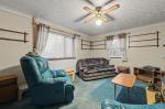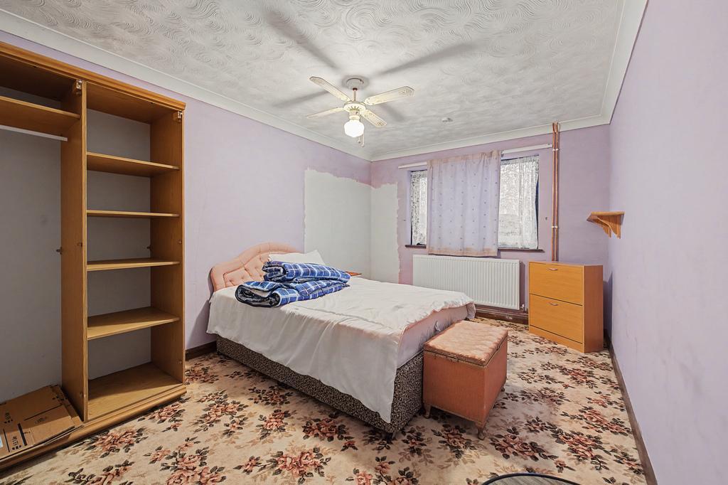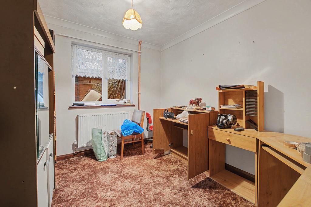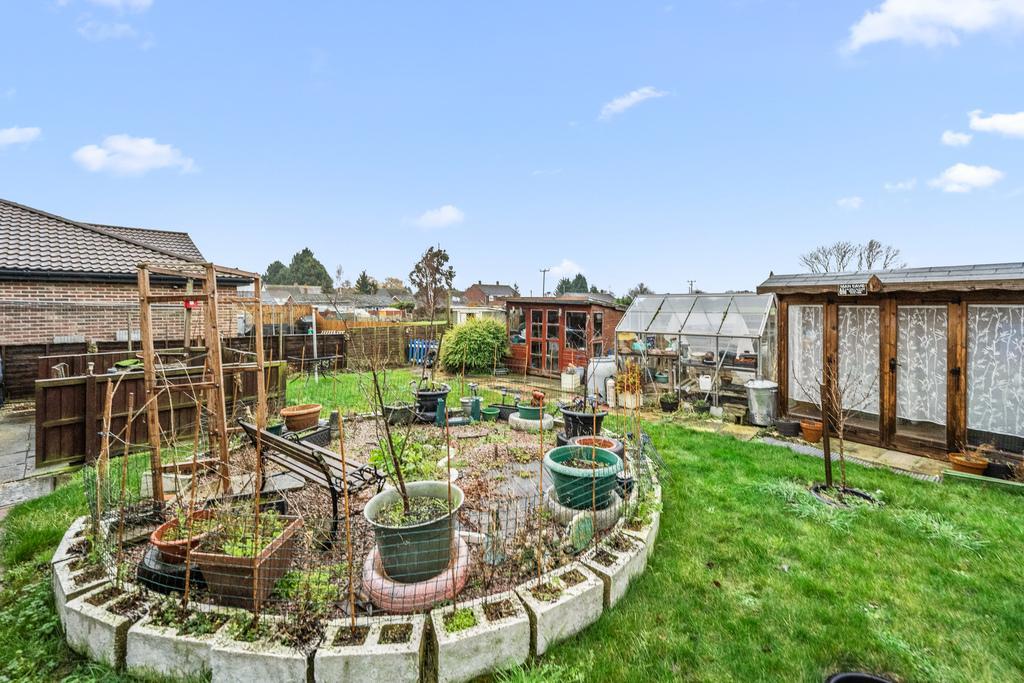 Outside space offers a gravelled driveway with a single garage and a front garden, gated side access leads to the rear enclosed garden which is mostly laid to lawn with two garden sheds and a greenhouse.