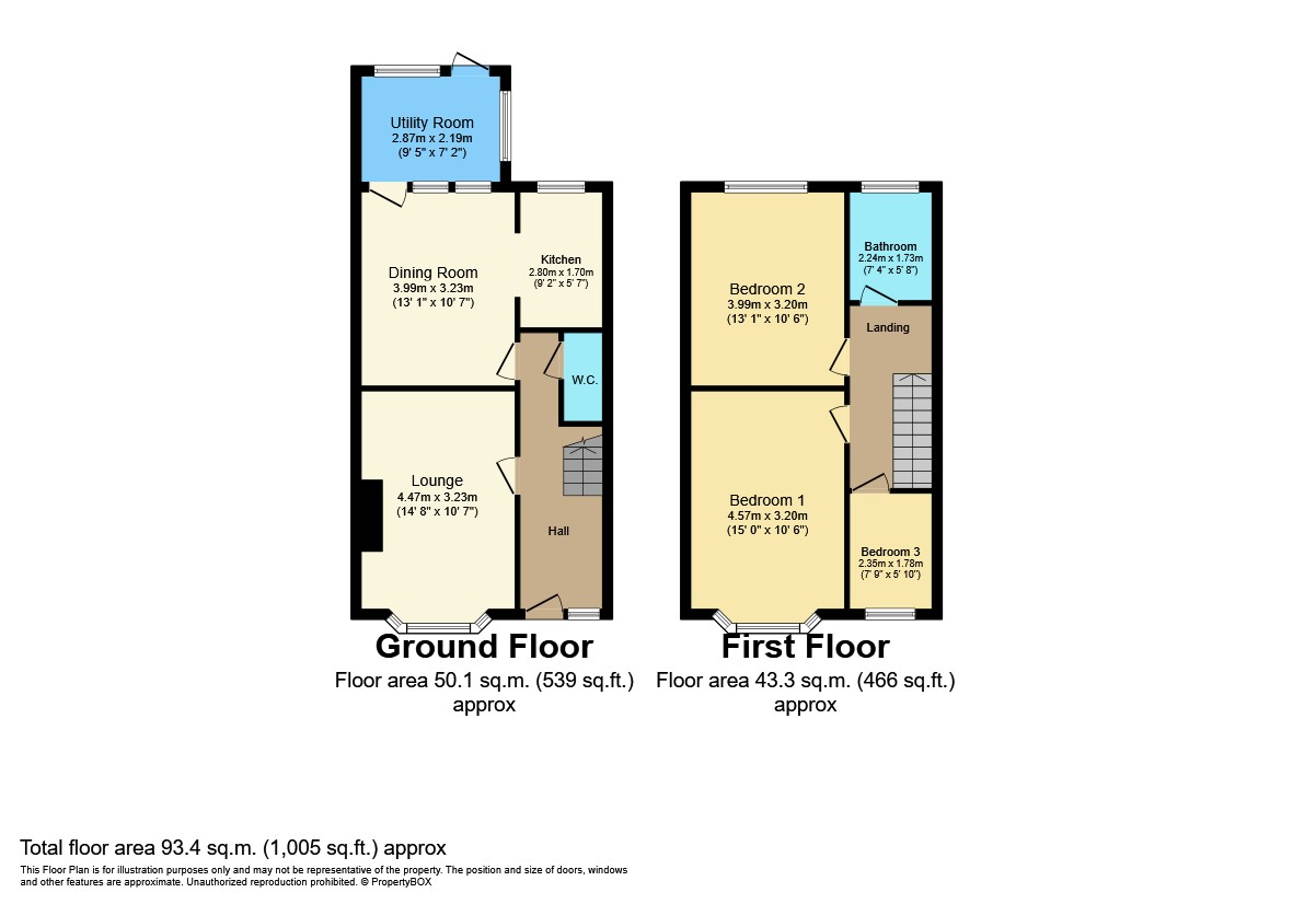 The ground floor includes an entrance hall, bay fronted lounge, dining room, kitchen, conservatory/utility room & that important downstairs W.C. Moving upstairs there are 3 bedrooms (2 double) & a bathroom.