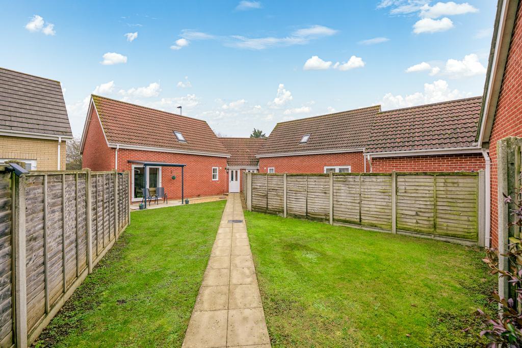 Outside space offers a gravelled courtyard area to the front of the property and an enclosed rear garden which is mostly laid to lawn with a sheltered patio area, ideal for relaxing and enjoying the sunshine. Access via a gate at the bottom of the garden leads to the garage and driveway.