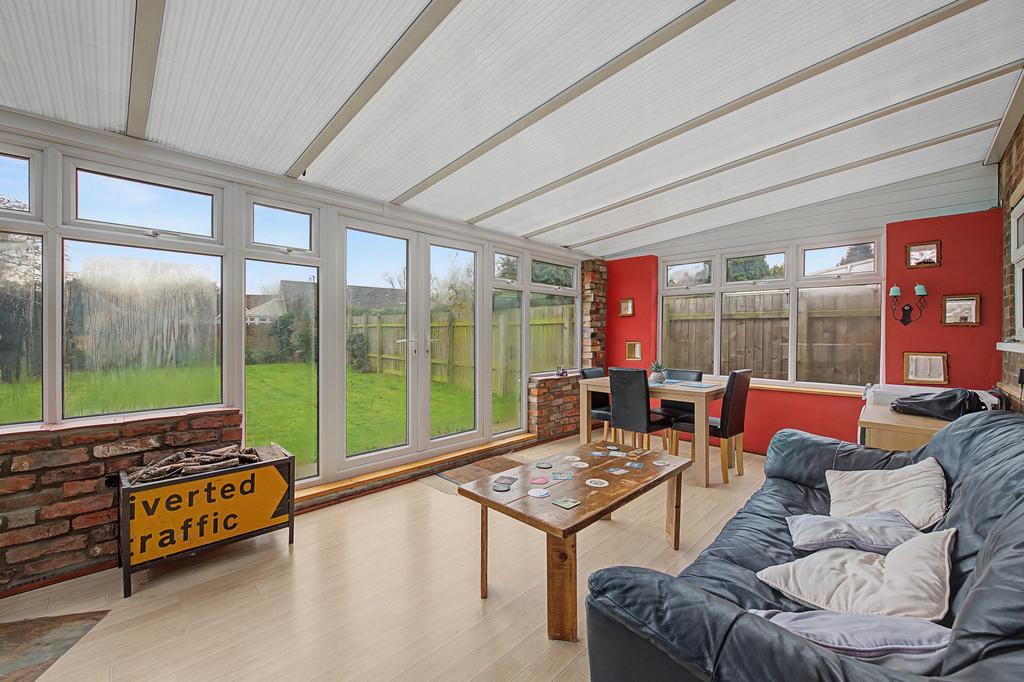 Outside space offers a large frontage with ample parking, a single garage with double doors on the back to allow access all the way through the garage to the garden. The garden is a generous size with patio and a well kept lawn.