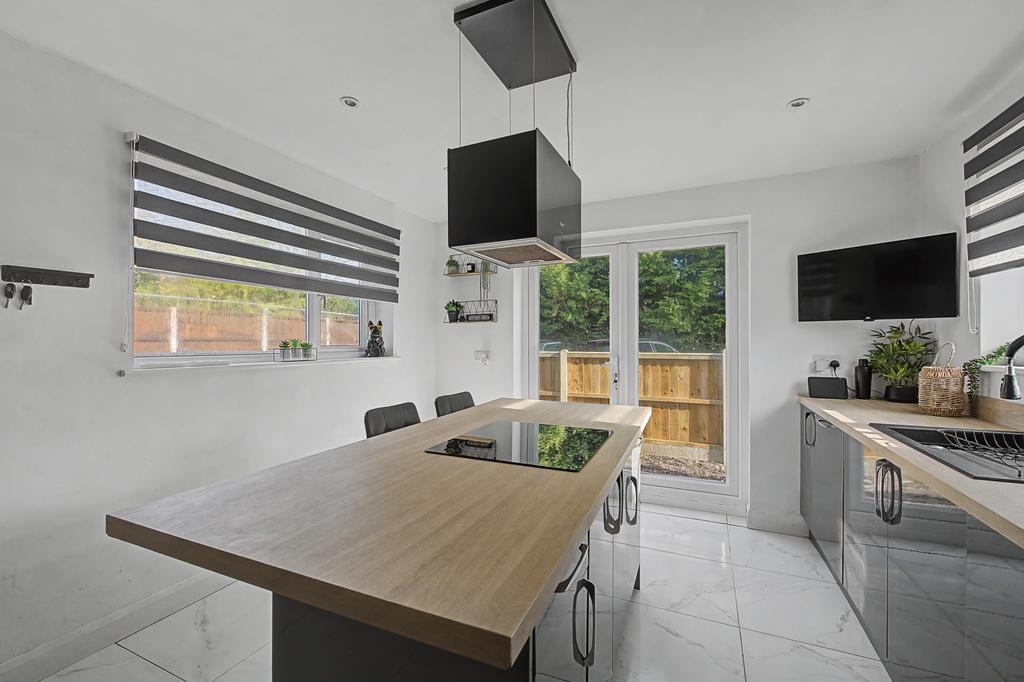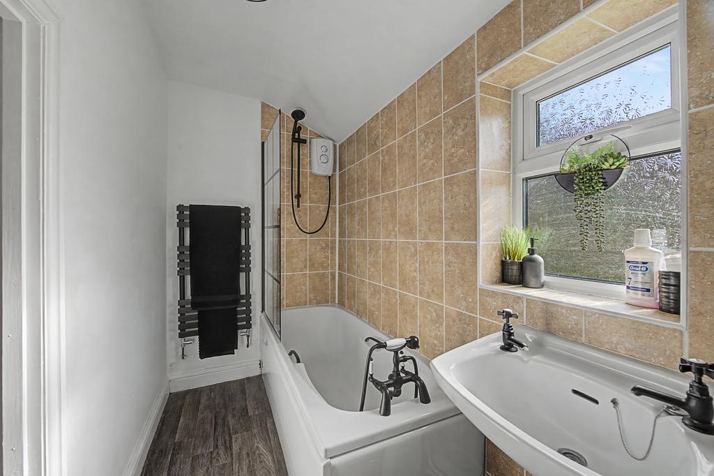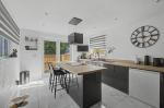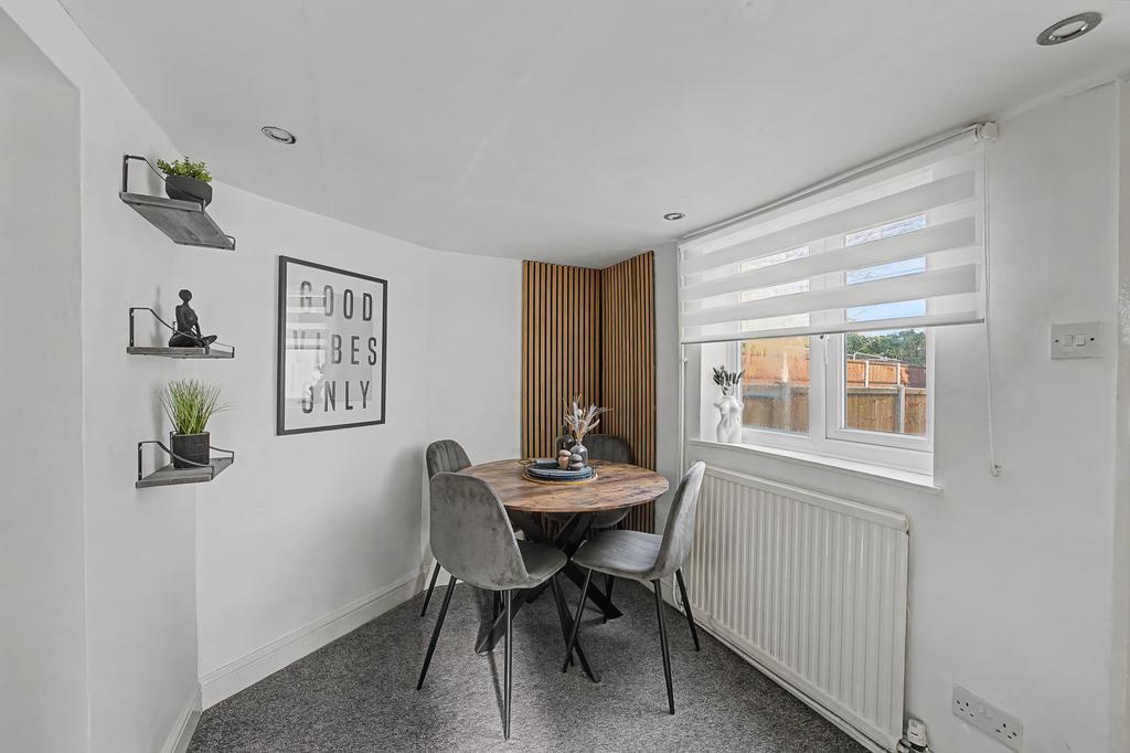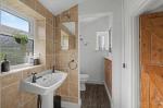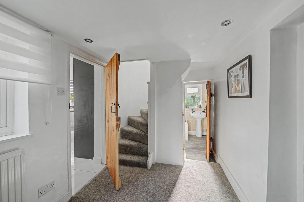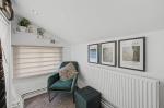 Visitors enter through the impressive newly fitted kitchen, with an island and integrated appliances. A door from the kitchen opens directly onto the private rear garden. The dining room sits just off the kitchen and provides a comfortable space for everyday meals or entertaining. The sitting room is bright and inviting, featuring a wood-burning stove as its focal point. A stylish ground floor bathroom includes a bath, separate shower, WC and wash basin, all newly installed.