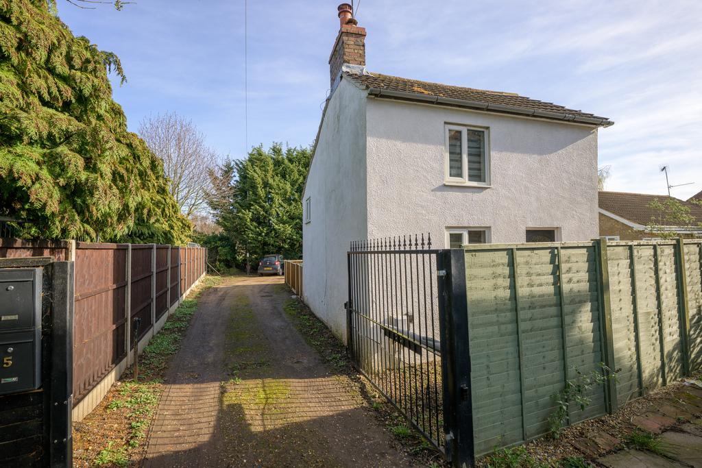 Set at the end of a quiet cul-de-sac, the cottage forms part of a small development accessed via shared electric gates. A shared driveway runs alongside the property, providing ample parking for multiple vehicles.