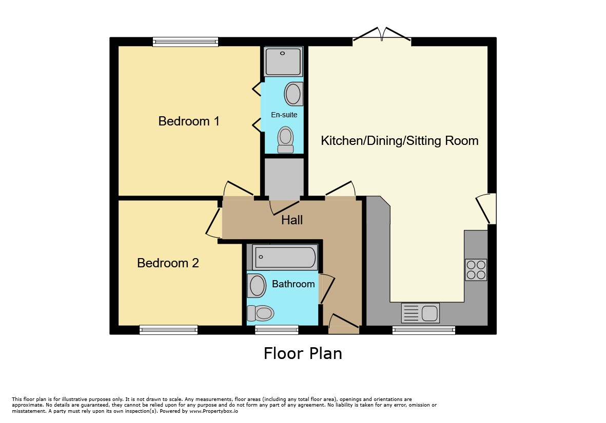 The open-plan living area boasts a fully fitted kitchen with built-in appliances, seamlessly flowing into the living space with double doors leading to the garden. Outside, there are two parking spaces at the front and an enclosed garden at the rear.