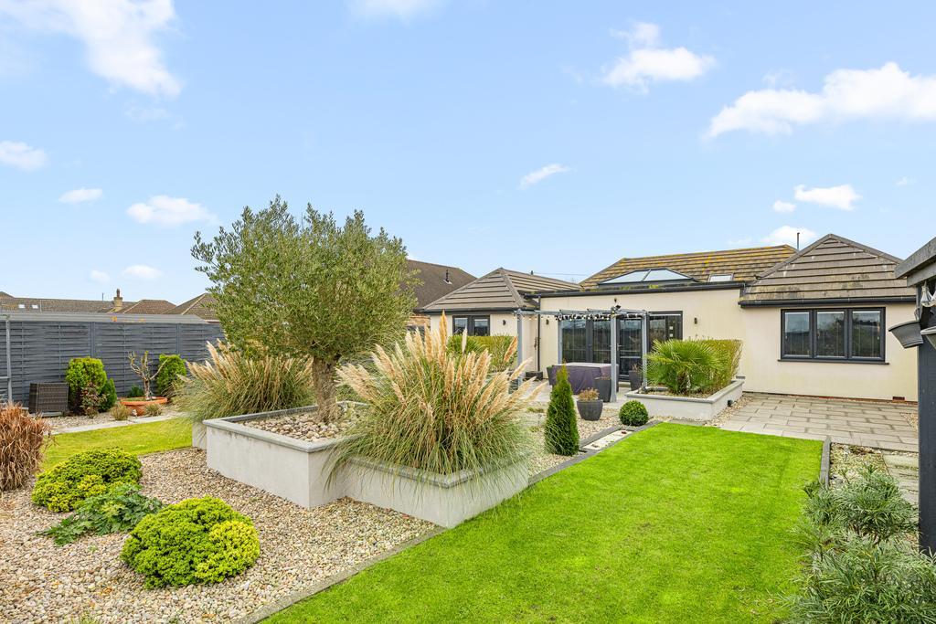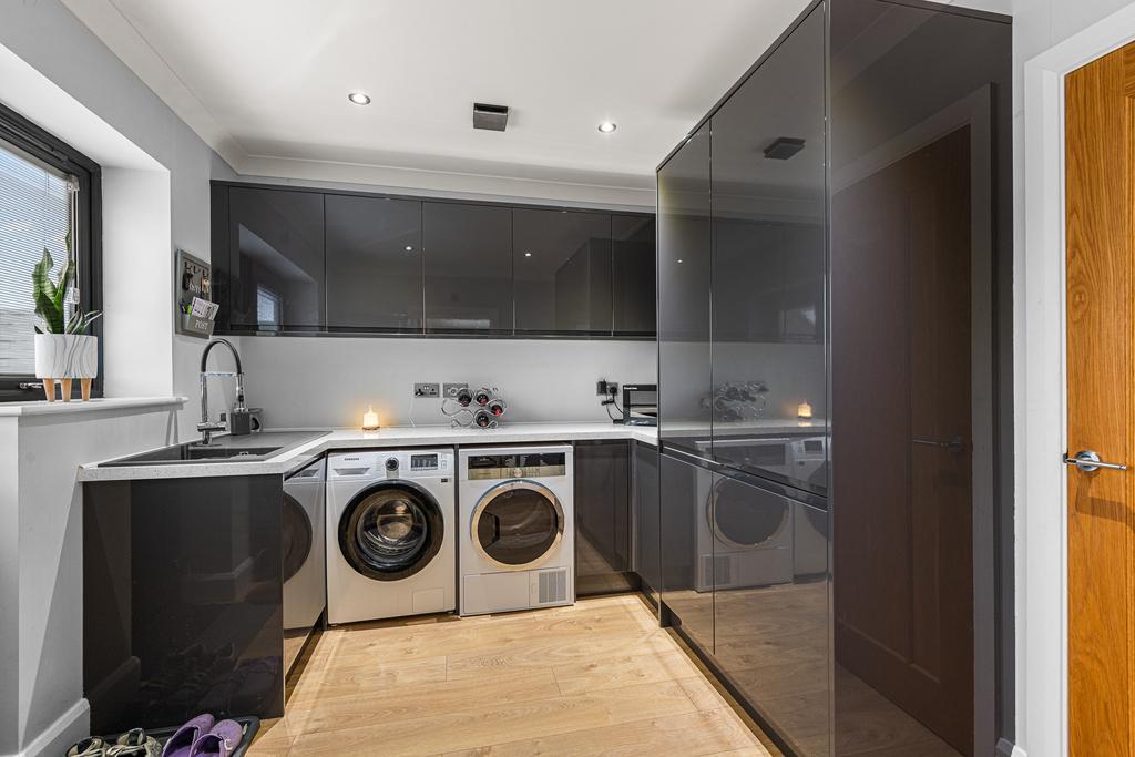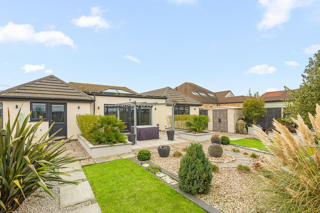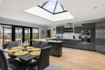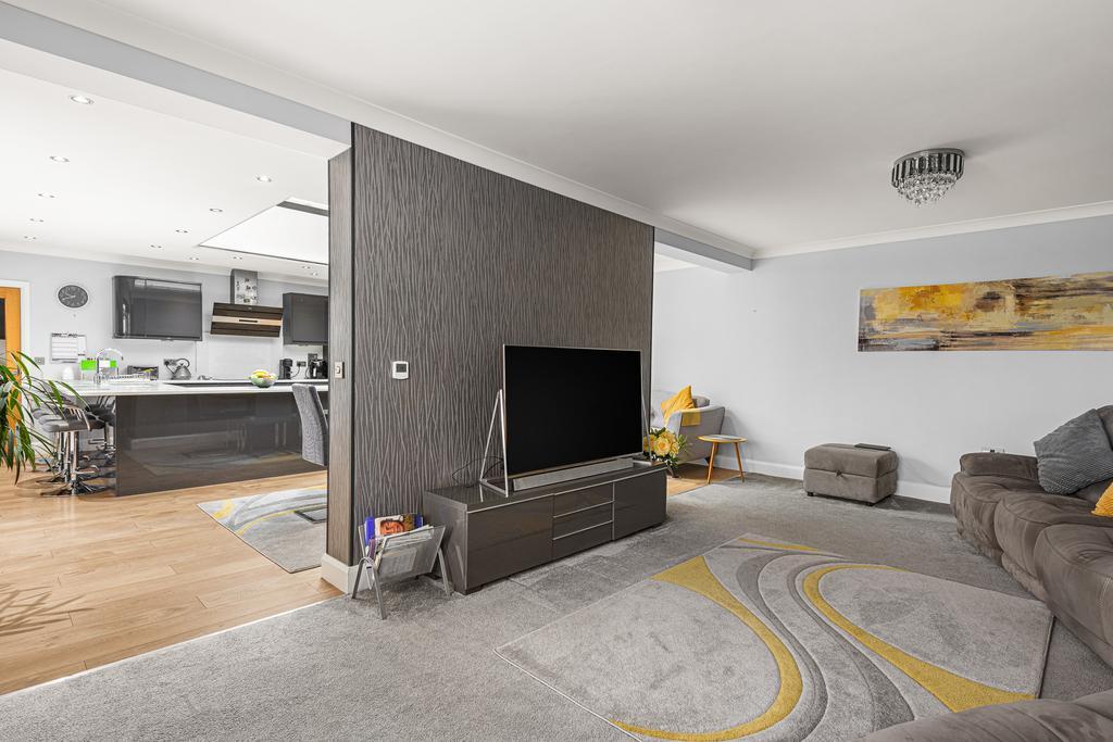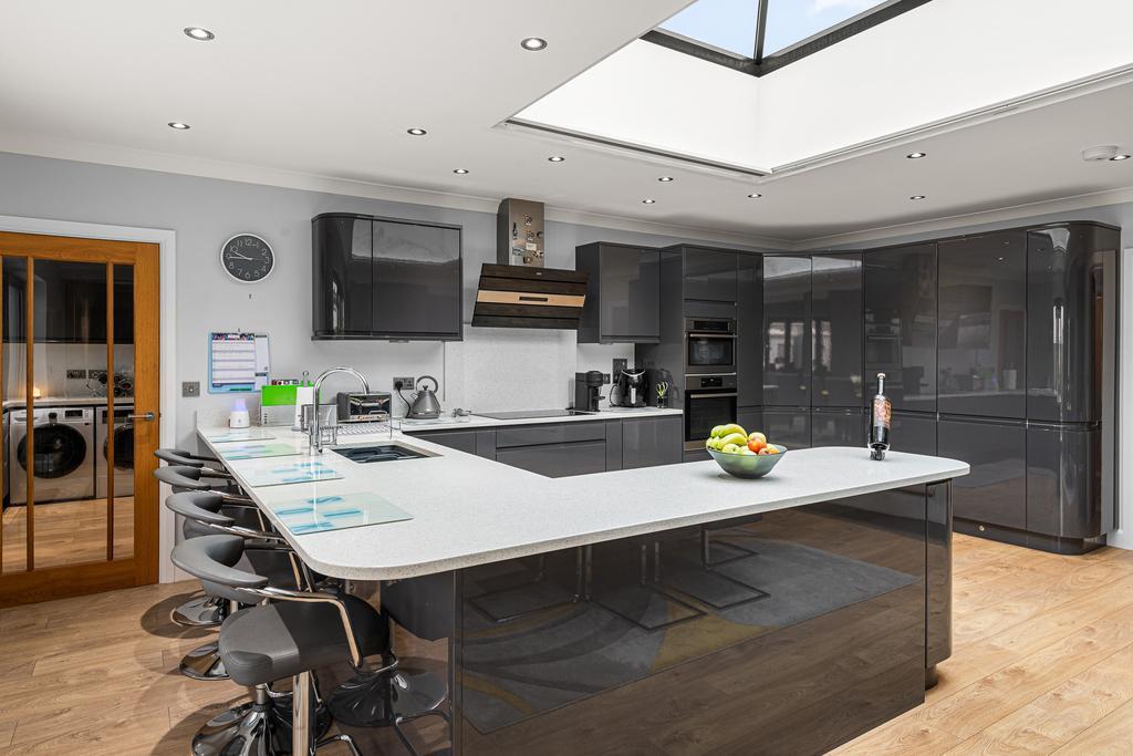The bungalow has 4 DOUBLE bedrooms with bedroom 1 having an ensuite shower room and a walk in wardrobe. Bedroom 4 is currently being used as a snug. All other bedrooms have wardrobes. There is a lovely open plan kitchen/dining room to the rear with a high end finish and built in appliances. a large sky light is the focal point to the room, letting in lots of light along with the double doors leading out to the garden.